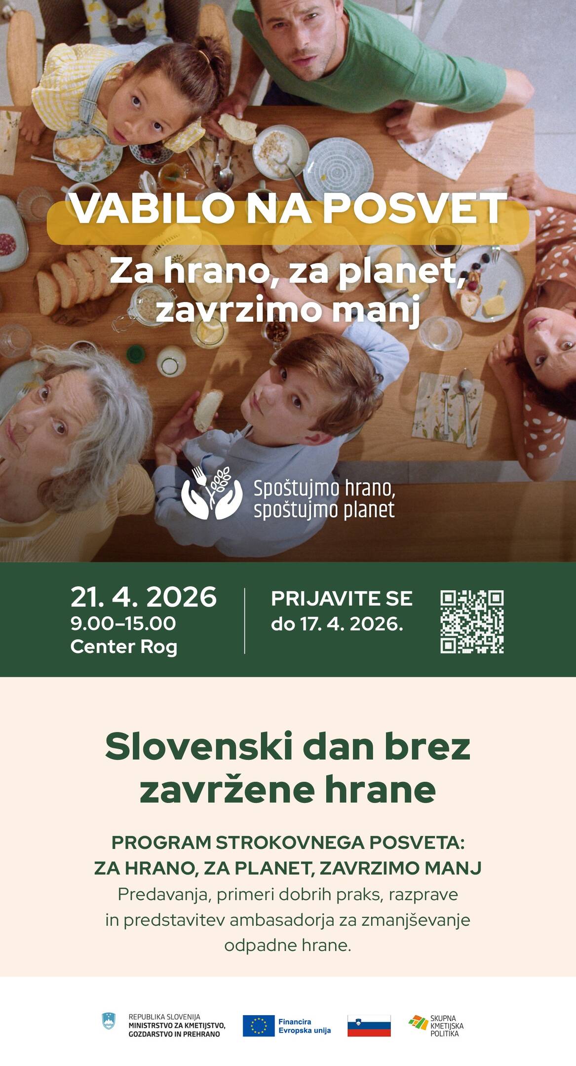 Strokovni posvet Ministrstva za kmetijstvo, gozdarstvo in prehrano RS z naslovom Za hrano, za planet, zavrzimo manj bo postregel z dobrimi praksami in inovativnimi rešitvami za zmanjševanje odpadne hrane, ki jih bodo predstavili slovenski in mednarodni strokovnjaki.